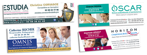 Rollup, bâche Tour de table pour salon/expos, Plaquette de tarifs, Carte de visite R/V.