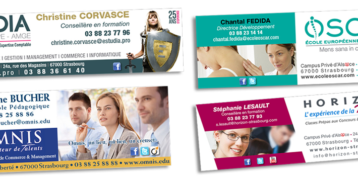 Invitation papier et emailing. La structure globale est gardée, seule les couleurs changent à chaque session.